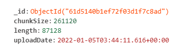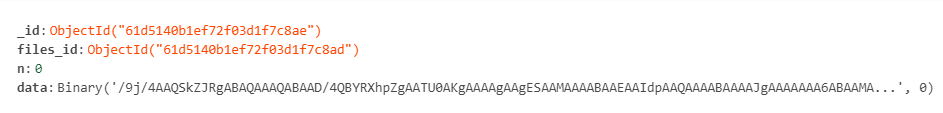 files_id를 보면 위의 fs.files에 적힌 id와 일치한다. 따라서 이 두개는 연결되어있는 거라고 확인할 수 있다.