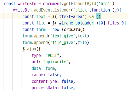 form데이터를 만들어 text와 image 파일을 담아 전송한다.