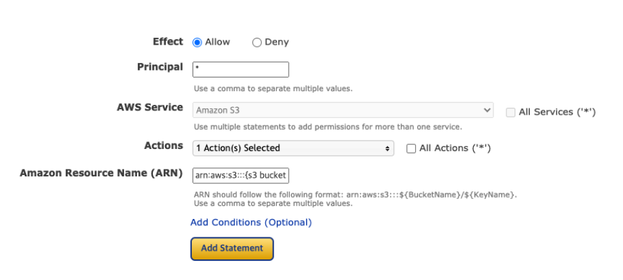 arn:aws:s3:::$(내 버켓이름) 괄호 생략해주어야한다.
