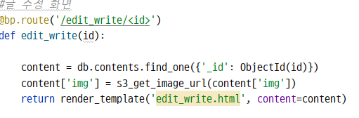 edit창에 들어가면 get_image_url을 사용하여 img이름을 s3의 주소로 바꿔주는 작업이다.