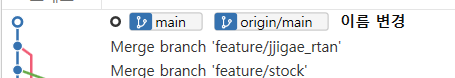 commit history에 보여지는 orgin/main 혹은 origin/master이름표는 원격 repo의 main 혹은 master 브랜치라는 뜻이다.