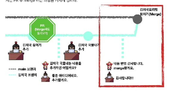 merge를 할 때 경우에 따라 작업한 내용을 리뷰하고 최종적으로 프로젝트에 반영한다.