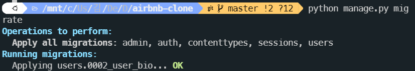 다시 makemigrations를하면 잘 만들어 진 것을 확인할 수 있다. migrate해서 적용시켜주자.