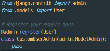 User모델에는 admin페이지에서 사용되고 있는 걸 사용하려고 한다.