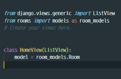 orphans도 정해줄 수 있고, created기준으로 정렬해줄 수도 있다. 우린 프로그래밍 없이 model = models.room 이것만으로 모든 room을 보여주고 있다. 신기하다