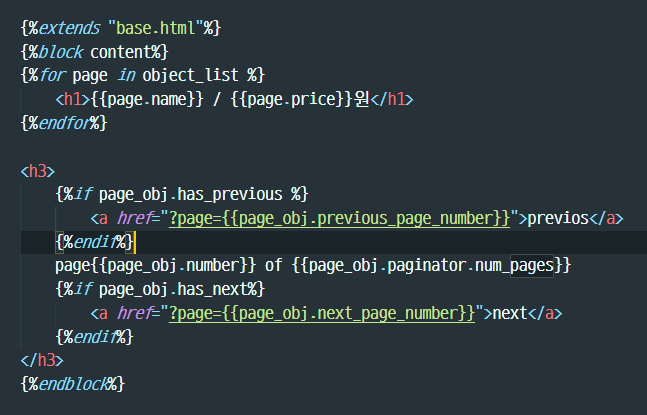 이렇게 바꿀 수 있다. object_list는 class based view에서 html로 넘겨주는 모델리스트이다. page_obj는 paginator.get_page(num)과 같은 거라고 생각하면 될 것 같다.