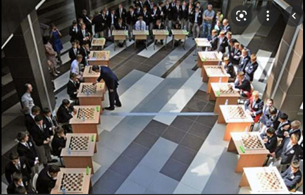 chess exhibition이란 한명의 체스마스터가 도전자들과 겨루는 방식이다. 체스마스터는 자신의 수를 두고, 도전자들이 어떤 수를 둘지 기다리지 않고 바로 다음 도전자의 체스판으로 넘어간 뒤 자신의 수를 두고 바로 다음 도전자에게로 넘어가는 방식이다.