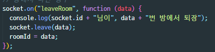 data의 값에 해당 방을 받아온 뒤 leave를 사용하여 방에서 퇴장하는 것을 해주었다.